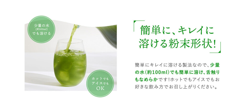 『wの健康青汁プラス』の飲み方は、80~100mlの水や牛乳などの飲み物に混ぜるだけ。